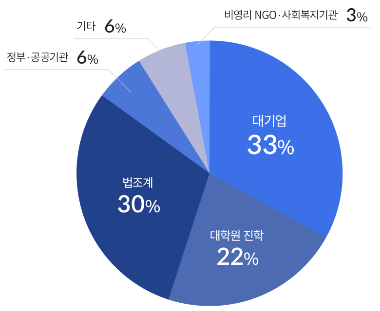 아래는 졸업생들의 주요 진출 분야와 구체적인 종사 기관입니다.