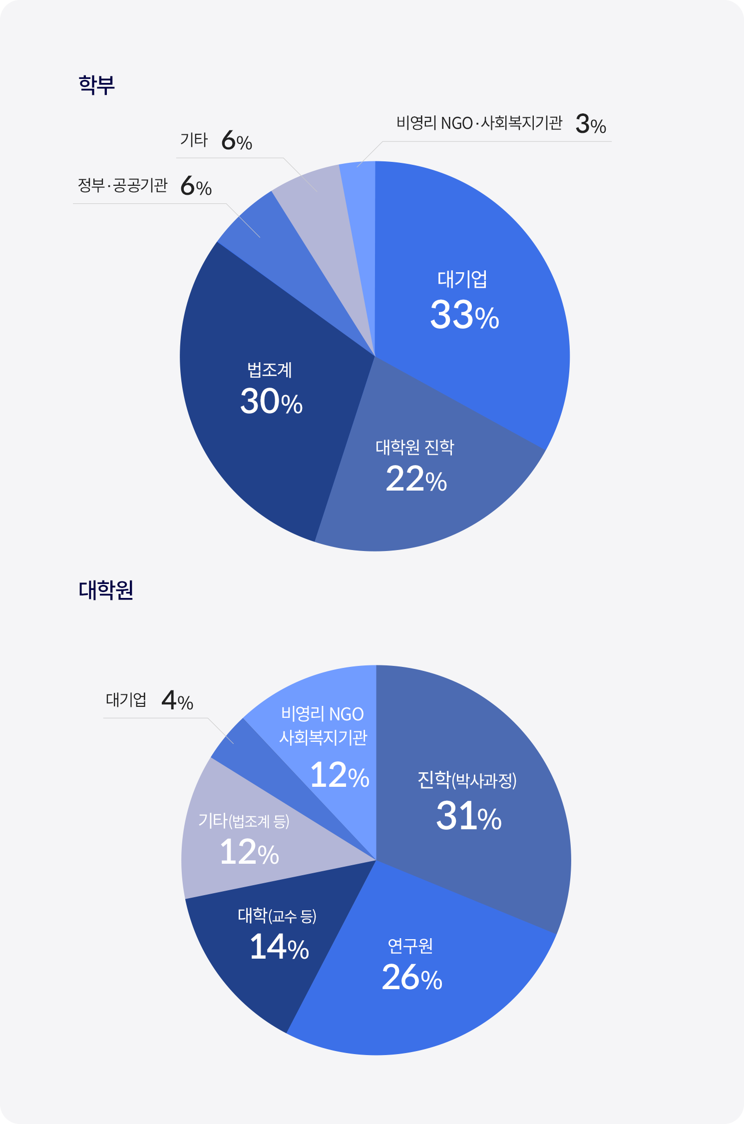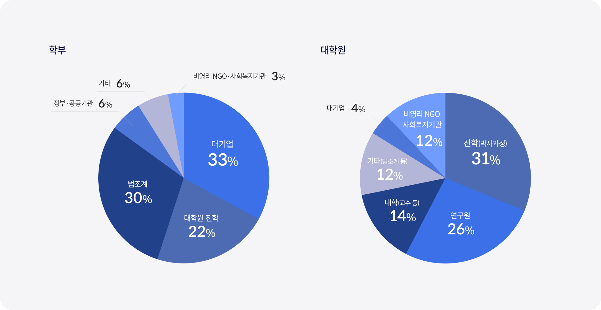 서울대학교 사회복지학과 졸업생들은 공공·민간·국제 분야에서 활약하며, 다양한 차원에서 우리 사회의 복지 증진을 위해 힘쓰고 있습니다.